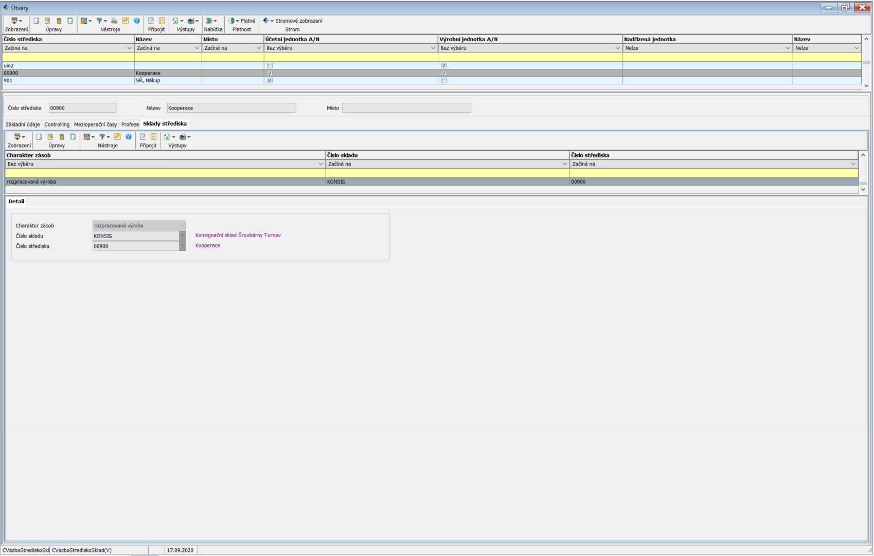 Sklady střediska