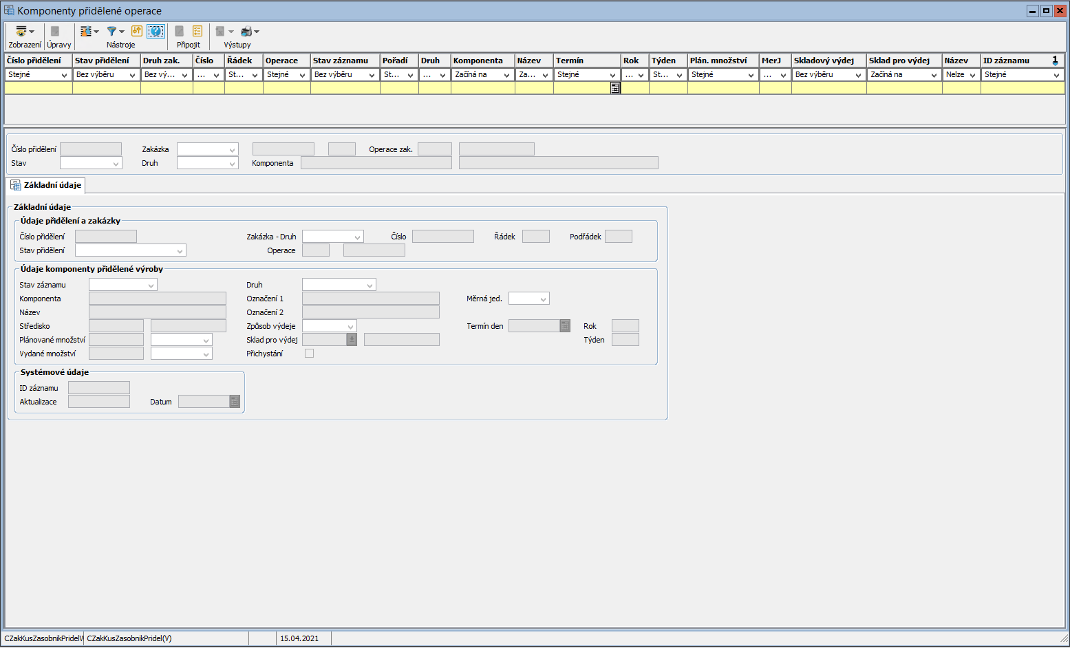 Komponenty přidělené výroby