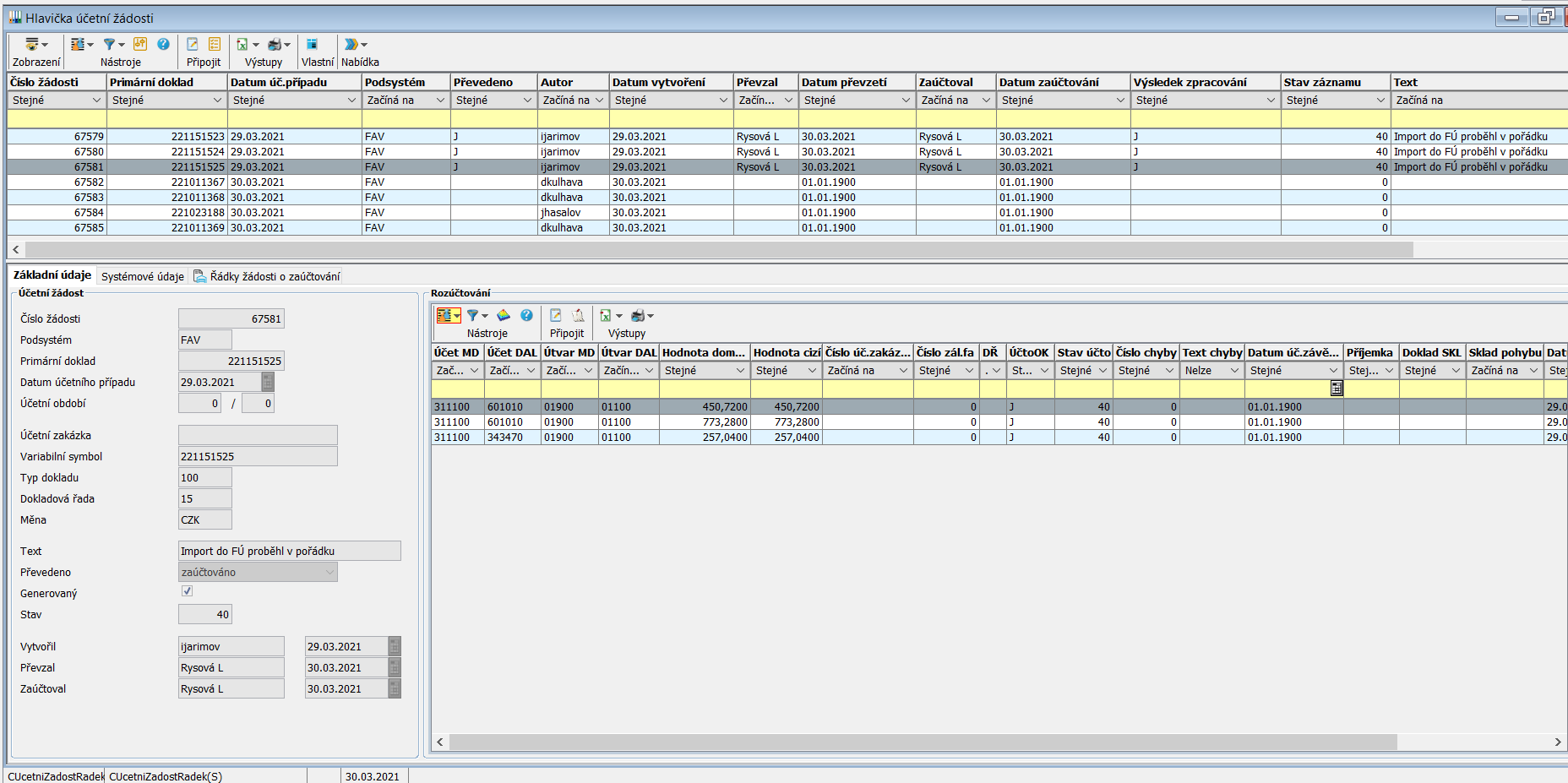 Tato tabulka vytváří žádosti o zaučtování dokladů z logistiky OR-SYSTEM OPEN do ekonomiky nové finanční účetnictví OR-OPEN žádosti se vytváří pro dva subsystémy