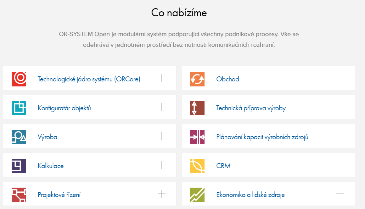 OR-SYSTEM Open je modulární systém podporující všechny podnikové procesy. Vše se odehrává v jednotném prostředí bez nutnosti komunikačních rozhraní.