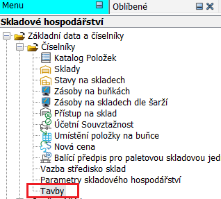 Založení tavby se provádí v úloze CTavba, která se v menu nachází v modulu Skladové hospodářství → Základní data a číselníky → Číselníky → Tavby.