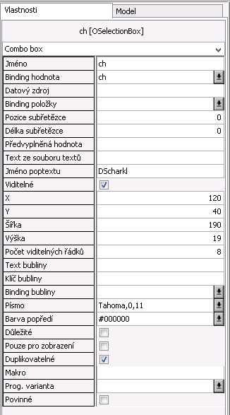 Počet viditelných řádků - Udává maximální počet řádků poptextu, které budou zobrazeny při rozbalení nabídky. Pokud poptext obsahuje více řádků, bude zobrazen posuvník pro možnost rolování mezi jednotlivými řádky poptextu, avšak současně bude zobrazeno pouze tolik řádku, kolik je nastaveno v této vlastnosti.