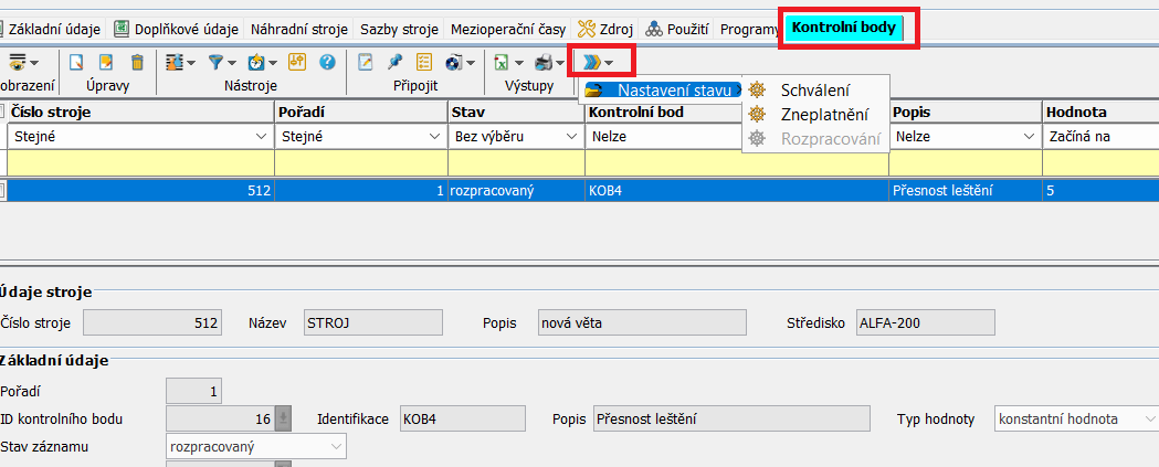 V záložce Kontrolní body vytvoříme nový bod pomocí tlačítka Nový záznam