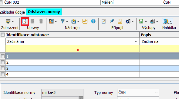 Nový odstavec lze založit, pokud je norma ve stavu „rozpracovaný“. Pro vytvoření odstavce použijeme tlačítko Nový záznam