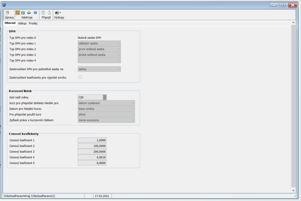 Parametry obchod