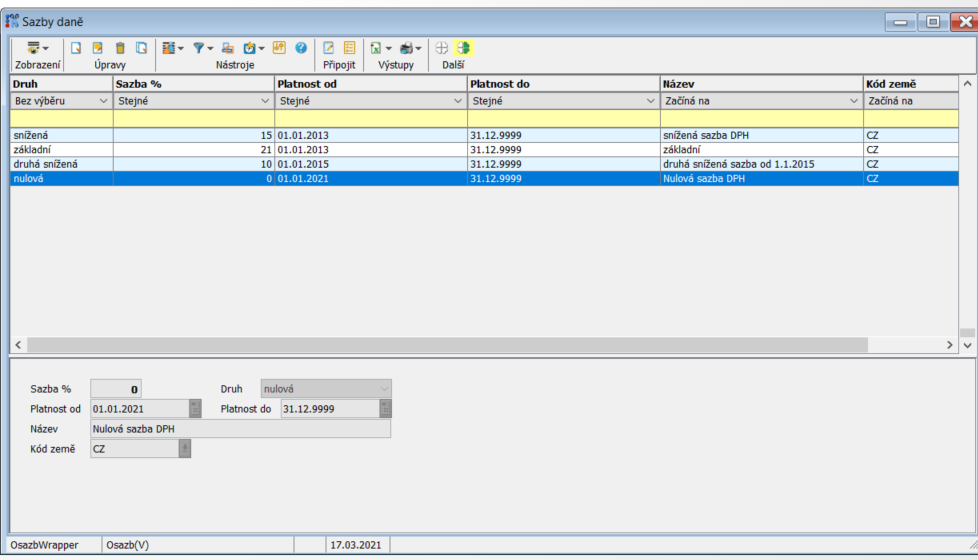 tyto sazby se použijí k vyplnění v úloze Parametry obchod pro příslušné indexy DPH