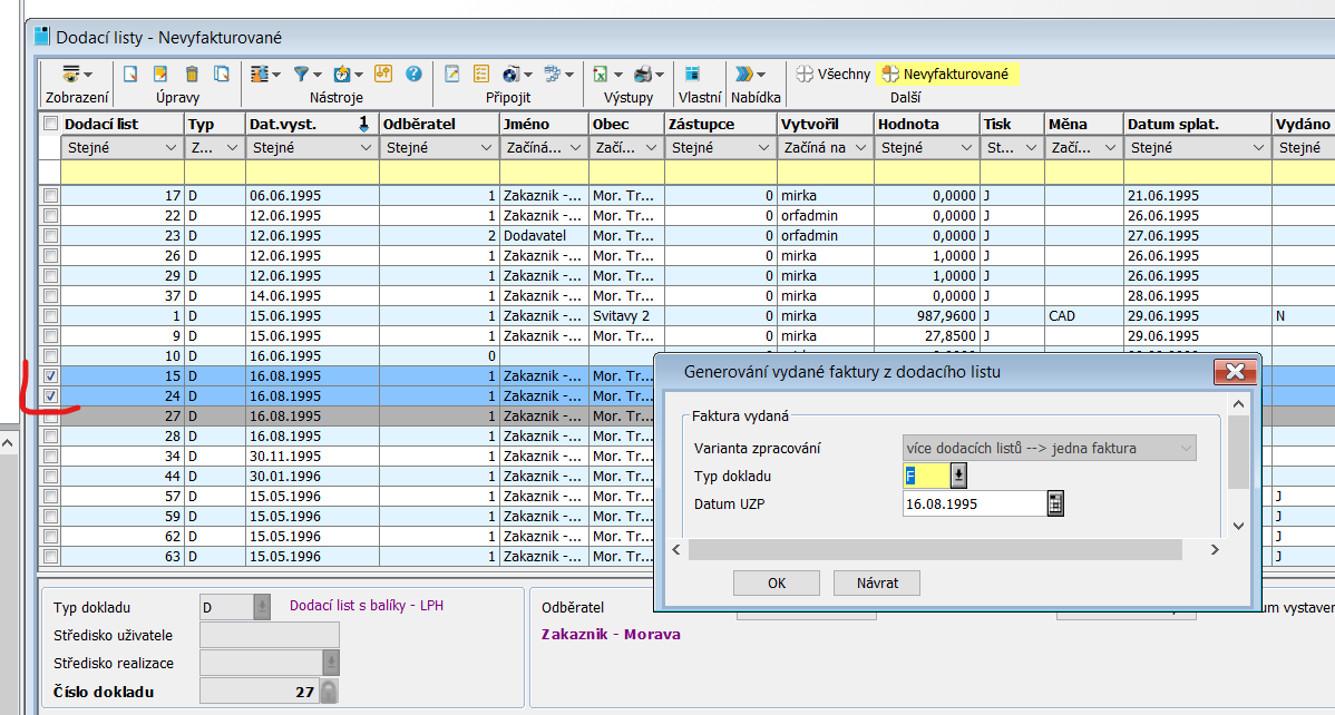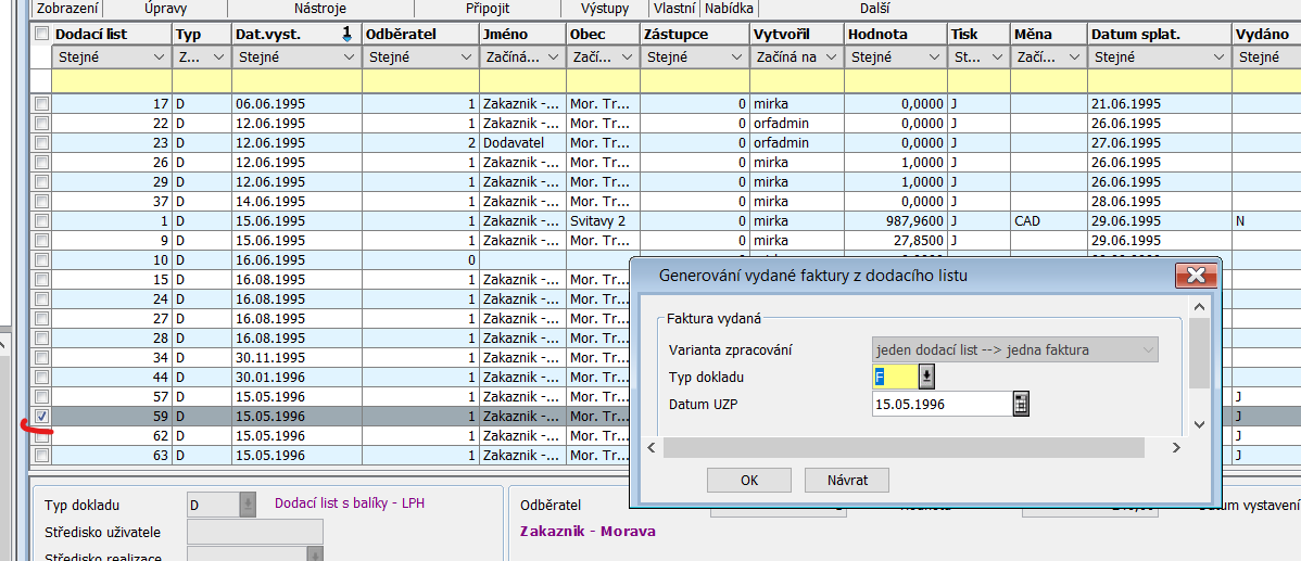 Storno dodacího listu - možnost storna dodacího listu v případě, že dodací list nebyl vyfakturován. Lze provést storno všech řádků nebo jen některých řádků dodacího listu.