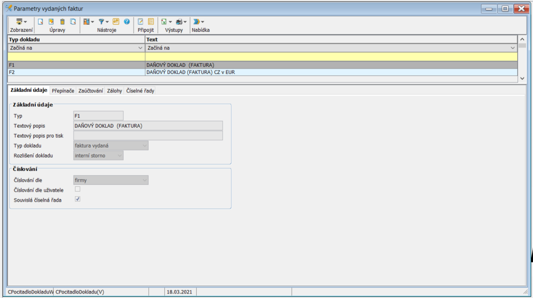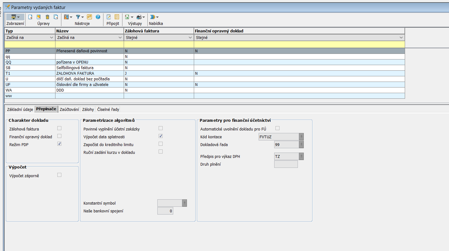 Typ dokladu - Udává typ faktury pro kterou je tento parametr platný.