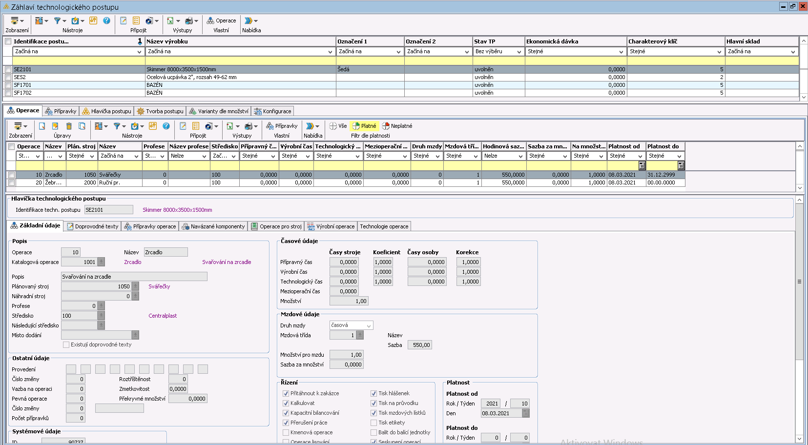 Technologický postup je předepsaný technologický postup výroby pro konkrétní výkres (má význam pro finální výrobky a polotovary = pro vyráběné položky).
