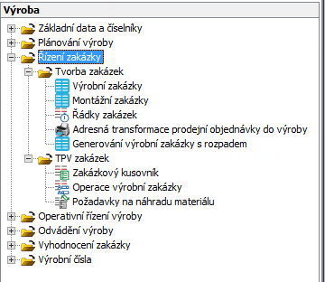 Složka TPV zakázek je složena z těchto oblastí:
