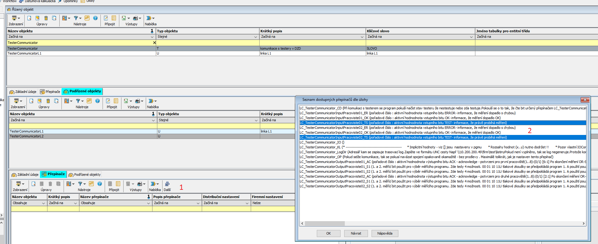 Nyní potřebujeme odlišit přepínače LC_TesterCommunicatorInputPracoviste01_TS a LC_TesterCommunicatorInputPracoviste02_TS
