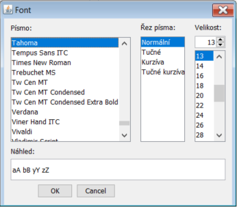 Písmo - Určuje font a velikost písma.