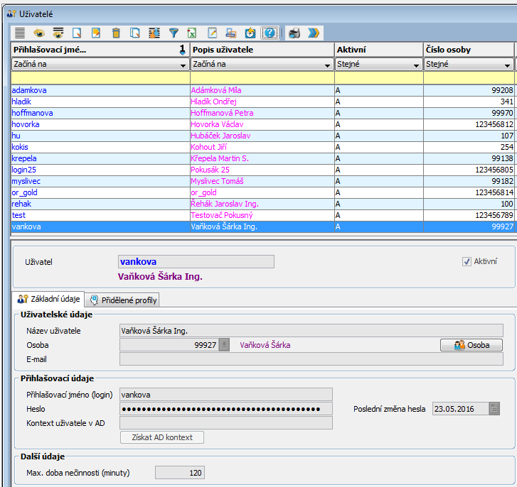 Uživatelé jsou základní datovou tabulkou oprávnění. Jedná se o seznam všech uživatelů Orsoftu Open, tj. subjektů, které mají právo pro přístup do systému.