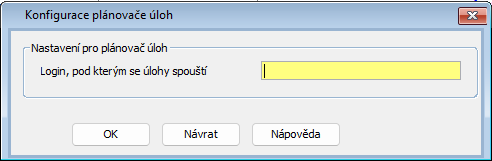 Nastavení - zde je nutné vyplnit login, pod kterým se budou úlohy spouštět