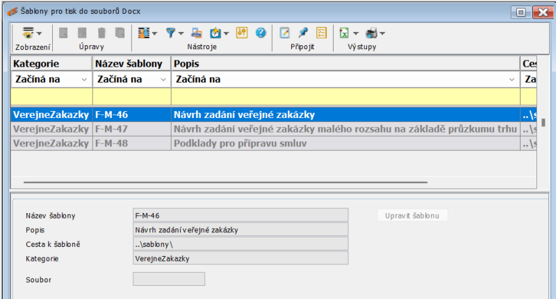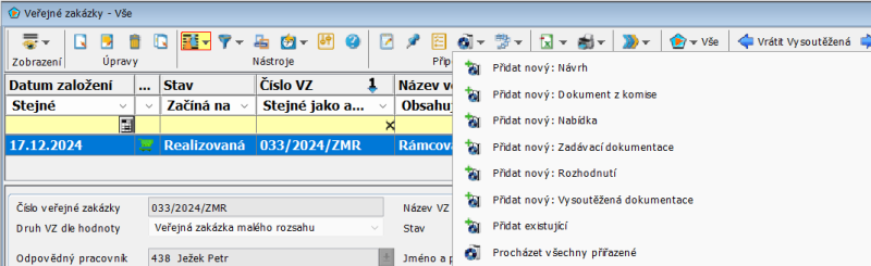 V menu jsou pro práci s veřejnou zakázkou připraveny další možnosti:
