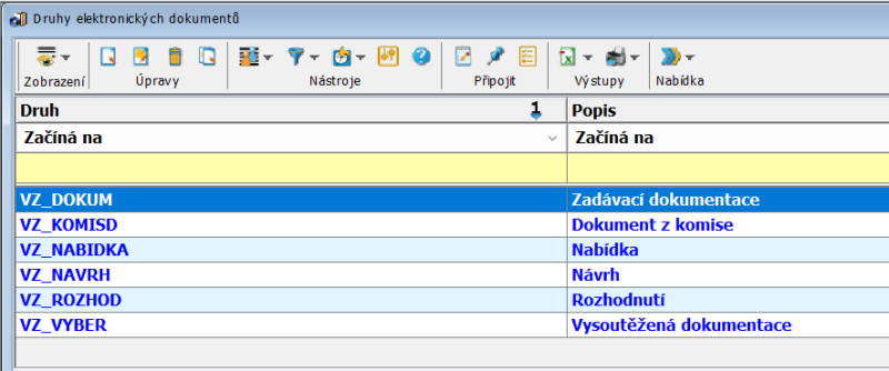 Nastavení dokumentů v elektronických dokumentech - Druhy dokumentů