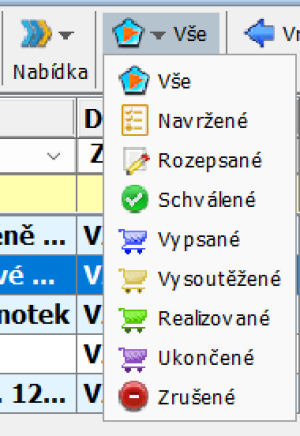 Filtry Výběr veřejných zakázek dle stavu zpracování